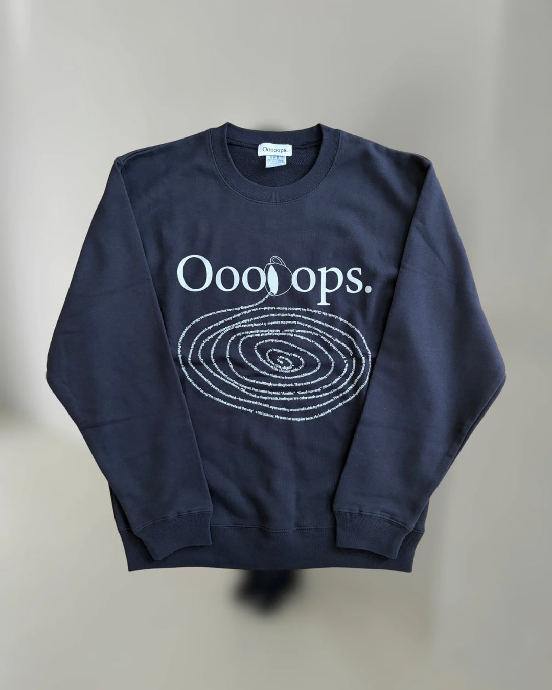 10oz , コットン100%のスウェットに”コーヒーをこぼしている”グラフィックを施しています。