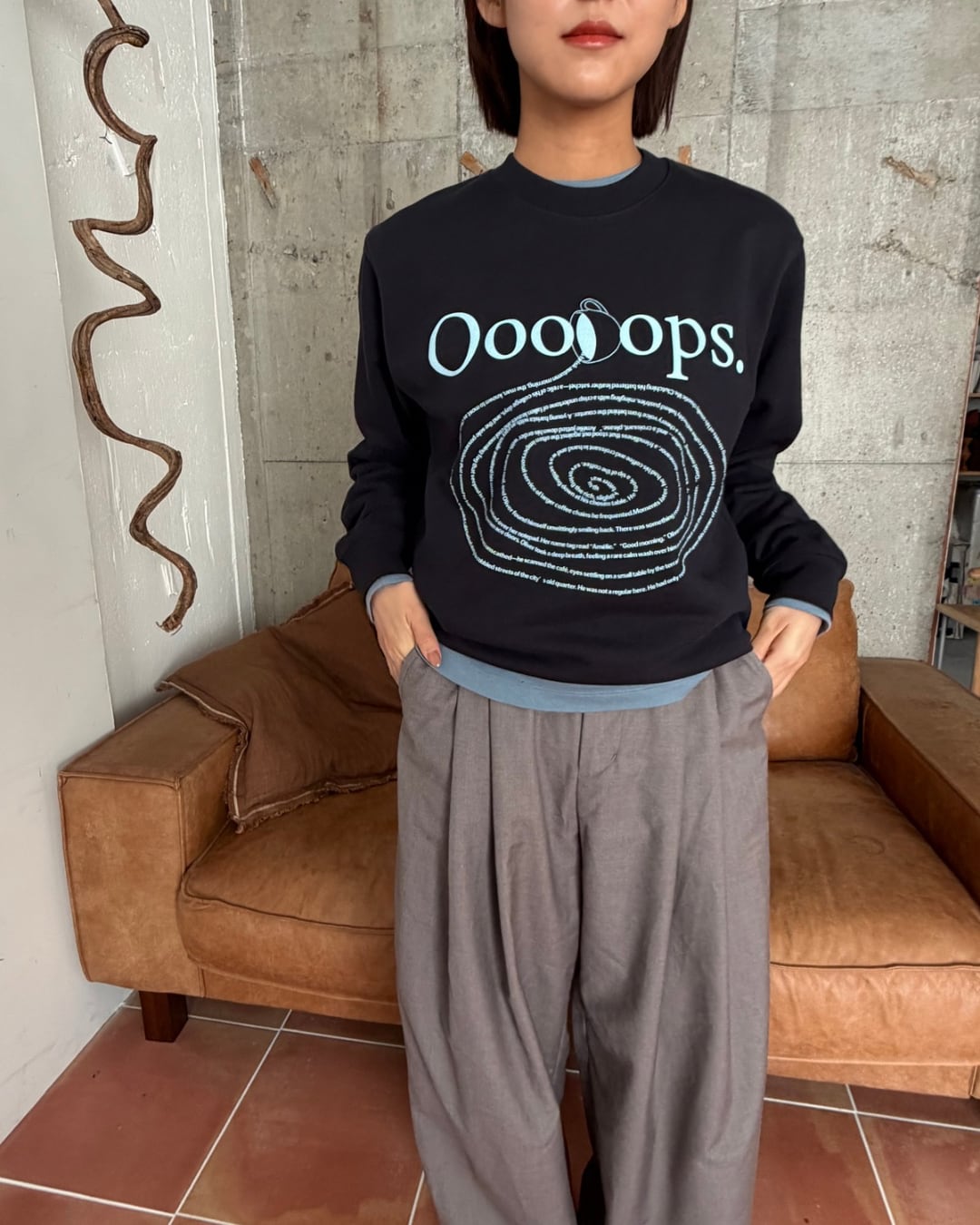 10oz , コットン100%のスウェットに”コーヒーをこぼしている”グラフィックを施しています。